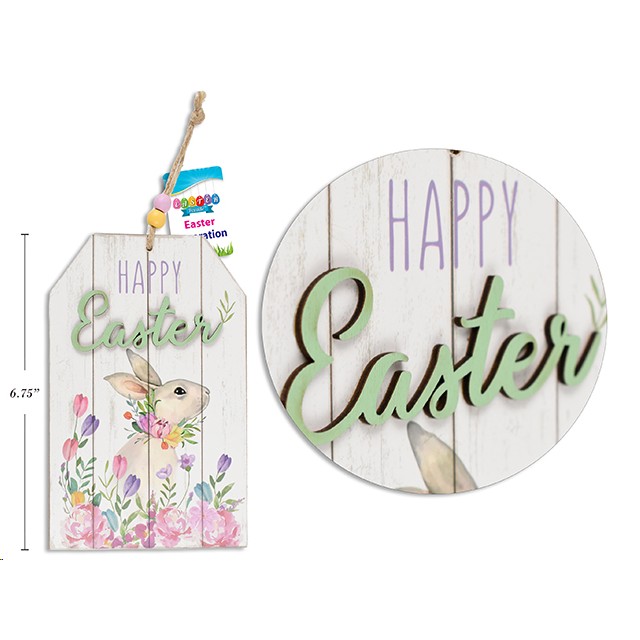 Easter MDF Plaque 17x11cm Beaded Jute Hanger