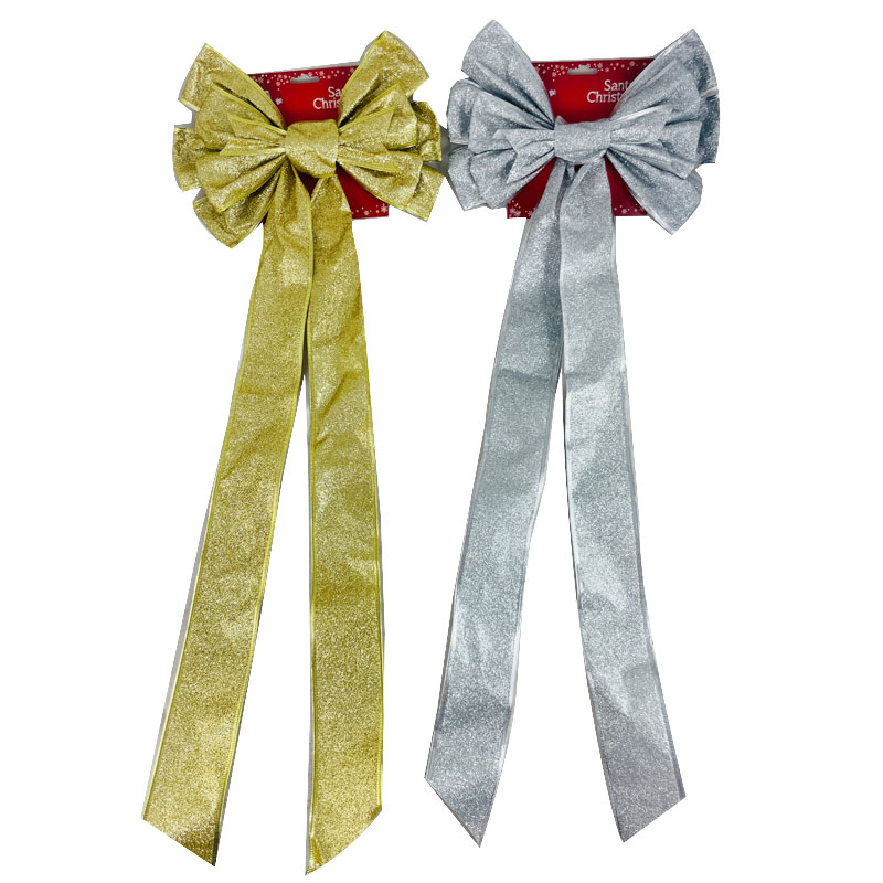 This silver glittery organza bow is an inexpensive and easy way to create a cohesive look and elevate your Christmas decorating style. It's very sparkly, lightweight, easy to hang, will work well with any colour/texture of decoration.